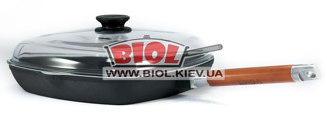 Сковорода ГРІЛЬ чавунна 28х28 см зі знімною ручкою та скляною кришкою БІОЛ 1028C