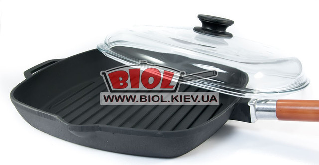 Сковорода квадратна для гриля чавунна 28 см зі знімною ручкою та скляною кришкою БІОЛ