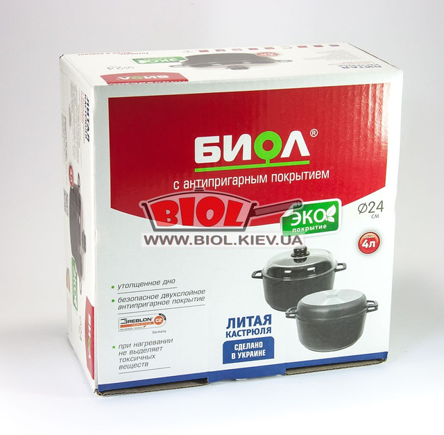 Каструля з алюмінію 4,0 л з антипригарним покриттям і кришкою-сковородкою БІОЛ