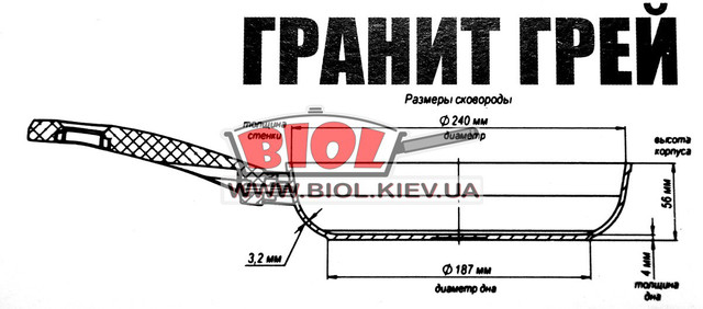 Сковорода 24 см h-5,5 см з темно-сірим антипригарним покриттям БІОЛ "Гранит Грей" 24134P